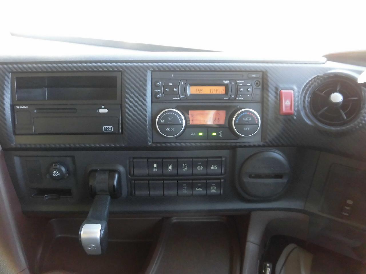 | ハイルーフキャビン、ラッシングレール2段、引き出しフック9対、床鉄板張り、FRP製工具箱880mm、鉄製収納箱、カラーバックモニター、リターダー、リモコンドアキー、アルミホイール、メッキパーツ(Fバンパー、Fグリル、ミラーステー、ミラーカバー)、室内清掃済み、左あおり擦り傷あり、左右アルミブロック下部曲がりあり |