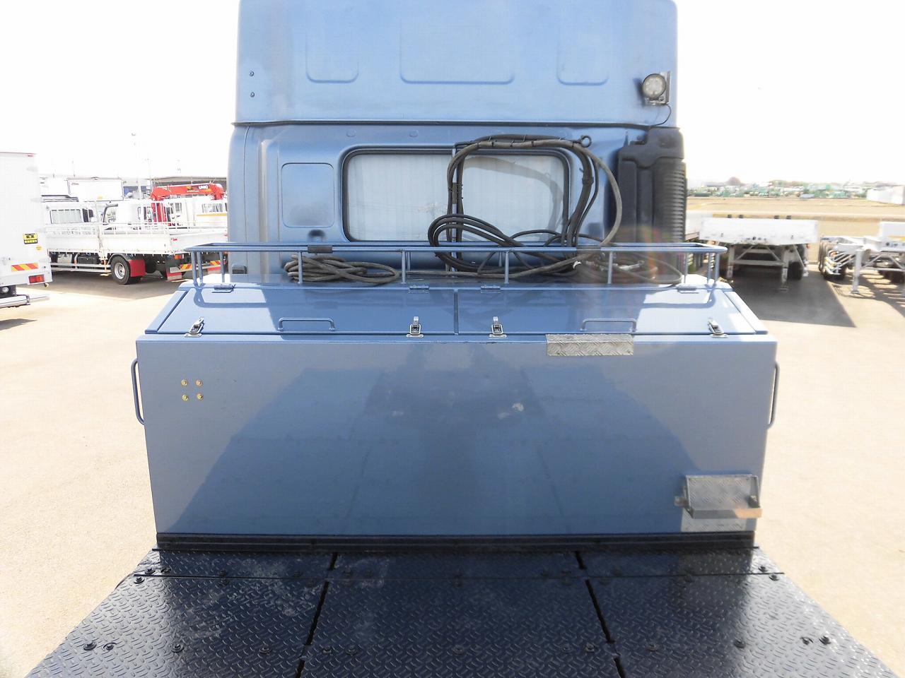 | ハイルーフキャビン、プロシフト(2ペダル)、520psエンジン、流体式リターダー、キャビン後方大型道具入れあり、室内清掃済み、シャーシさびあり、外装小傷 |