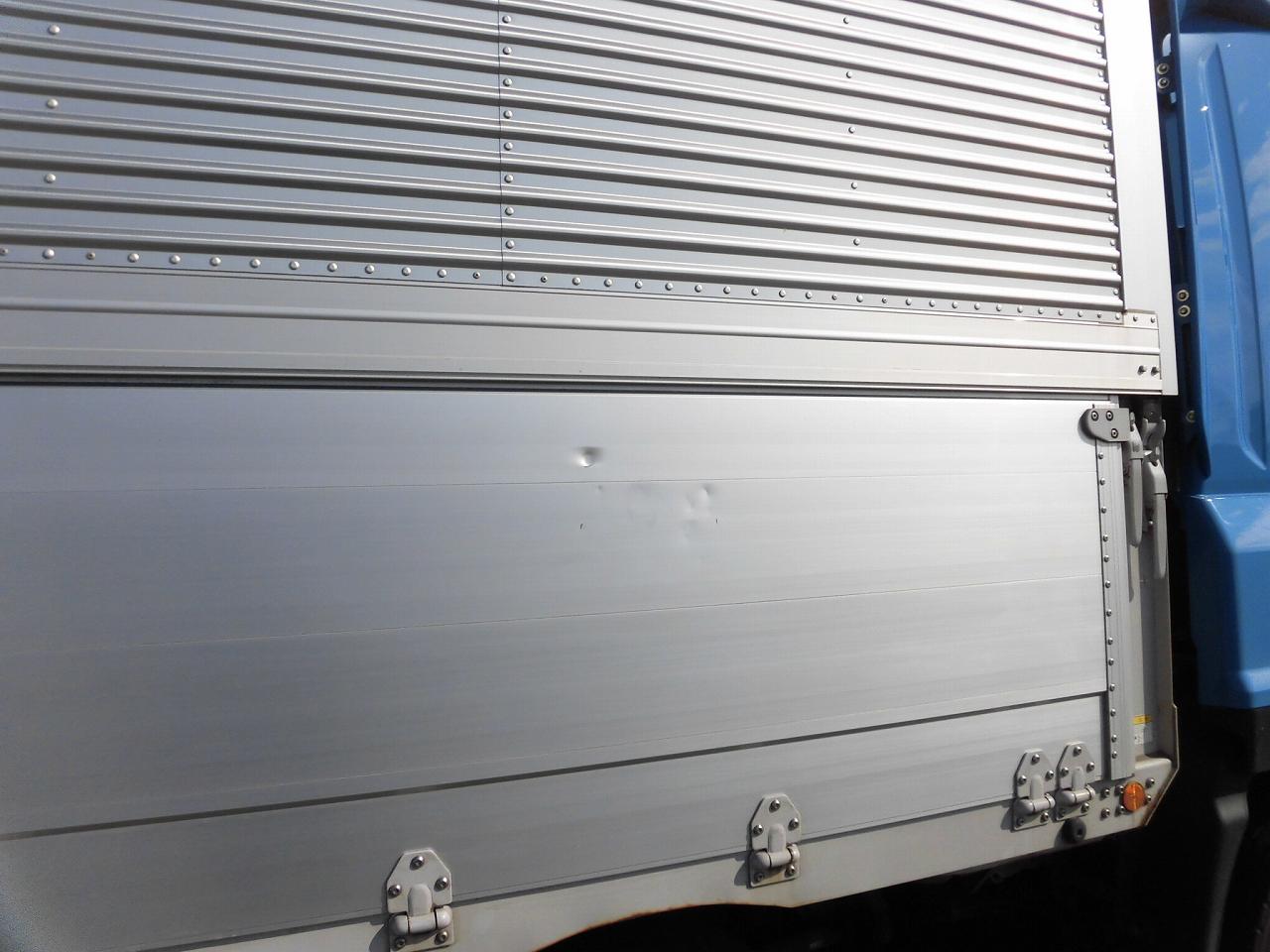 | ラッシングレール2段、引き出しフック18対、りん木入れ、ステンレス工具箱900mm、カラーバックモニター、純正導風板、リモコンドアキー、室内清掃済み、運転席シート穴、左右あおりホイールナット傷あり、Fガラス小傷あり、シャーシ・外装さび |