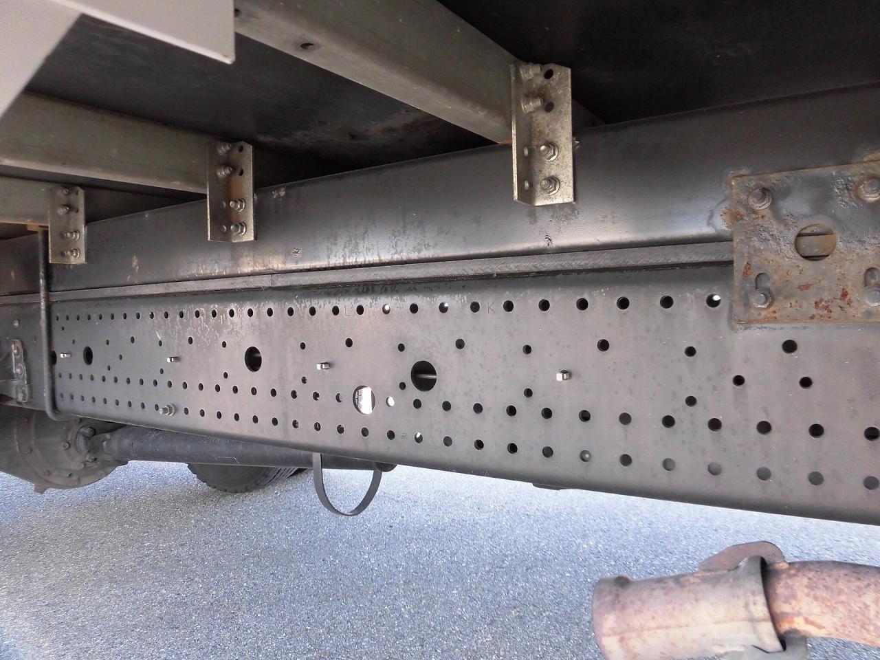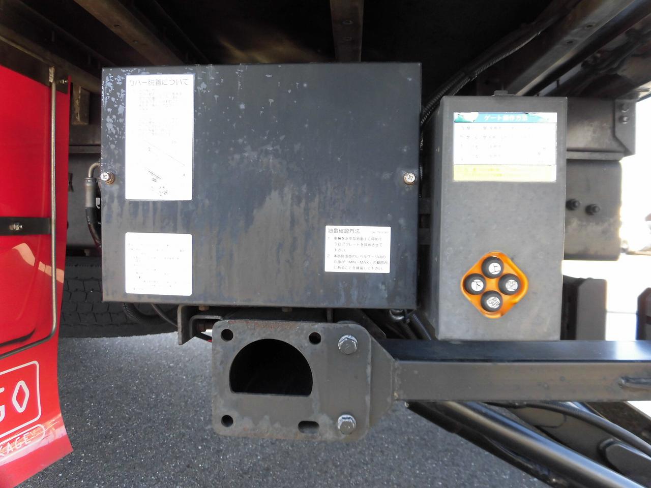 | 跳ね上げゲート1,505×2,365mm(内枠幅2,235mm)、ラッシングレール2段、カラーバックモニター、リモコンドアキー、室内清掃済み、ボディ看板はがし跡あり、ボディ内張りベニヤ板所々擦れ・割れ、ボディ枠へこみあり |