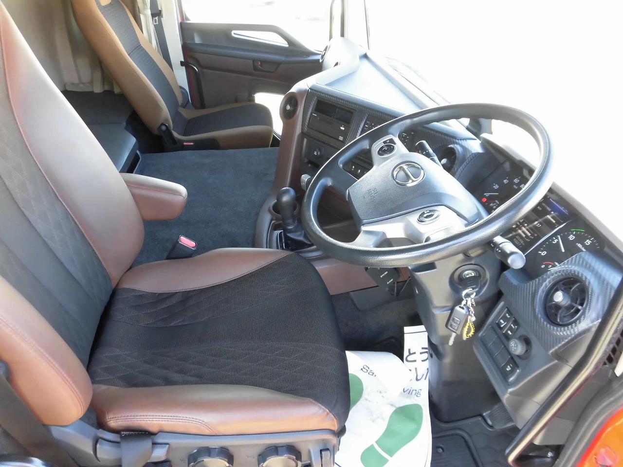 | ハイルーフキャビン、ラッシングレール2段、引き出しフック9対、床鉄板張り、FRP製工具箱880mm、鉄製収納箱、カラーバックモニター、リターダー、リモコンドアキー、アルミホイール、メッキパーツ(Fバンパー、Fグリル、ミラーステー、ミラーカバー)、室内清掃済み、左あおり擦り傷あり、左右アルミブロック下部曲がりあり |